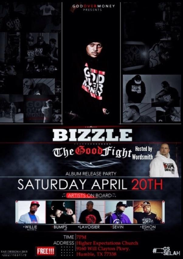 Super excited 2 HOST the record release party 4 Bizzle of God Over Money … “The Good Fight” – H Town stand up! – Wordsmith #HopeDealer #WOTS #GOM