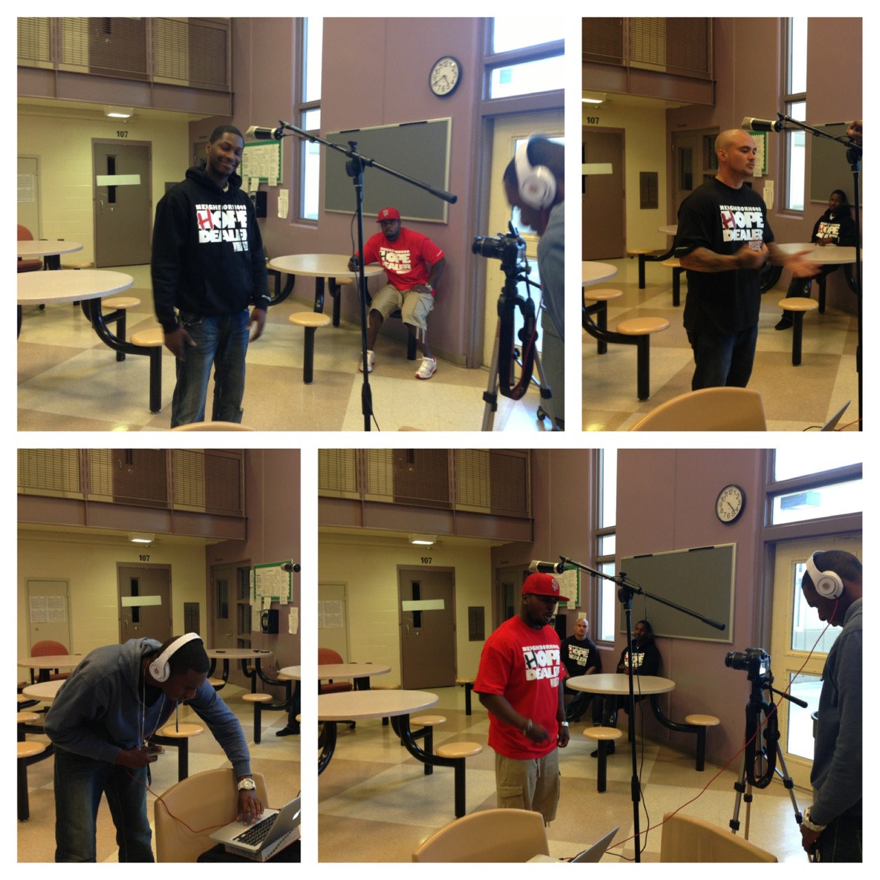 Video shoot for Wordsmith live in the Detention facility ft. Mike McKinnon & L.B. of Operation T.H.U.G.S. as well Transparent the executive producer … God be praised! #WOTS #HopeDealer