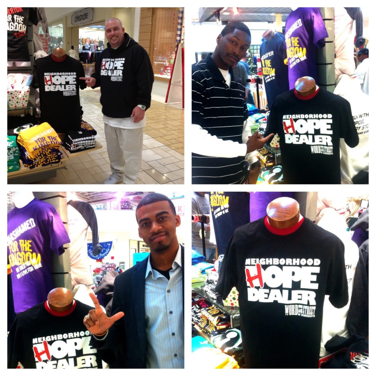 WordOnTheStreet w/ Wordsmith “Neighborhhood Hope Dealer” shirt made it to the mall! God be praised #OccupyAllStreets www.iamwordsmith.com