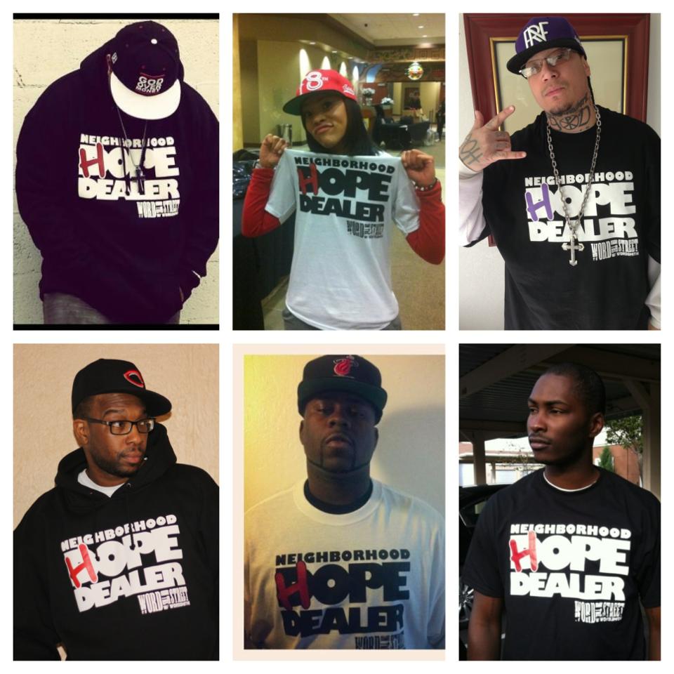 #DoubleSalute 2 Bizzle, Sevin, D-Maub, R.E.I.G.N., Young Fiyah & Transparent 4 rockin the #WordOnTheStreet “Neighborhood Hope Dealer” clothing! I definitely appreciate the shout & the support … God be praised! – Wordsmith #HelpingOthersProsperEternally www.iamwordsmith.com